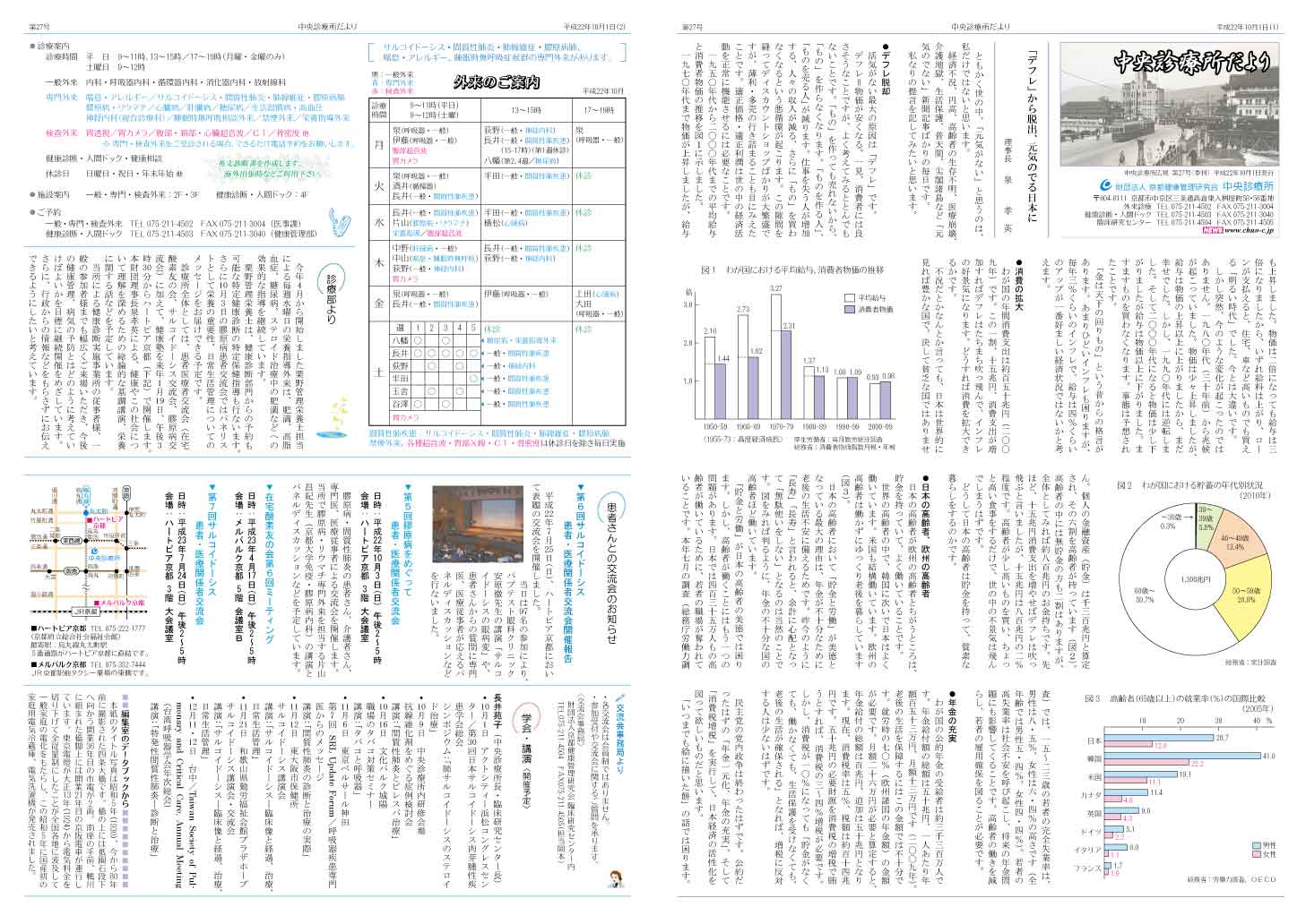 健診先ご紹介、京都新聞連載:京都の町から医療を考える④、一般・専門・検査外来のご案内、「日本・欧米間、戦時下の旅」出版記念会〈開催報告〉、診療・健康診断ニュース |